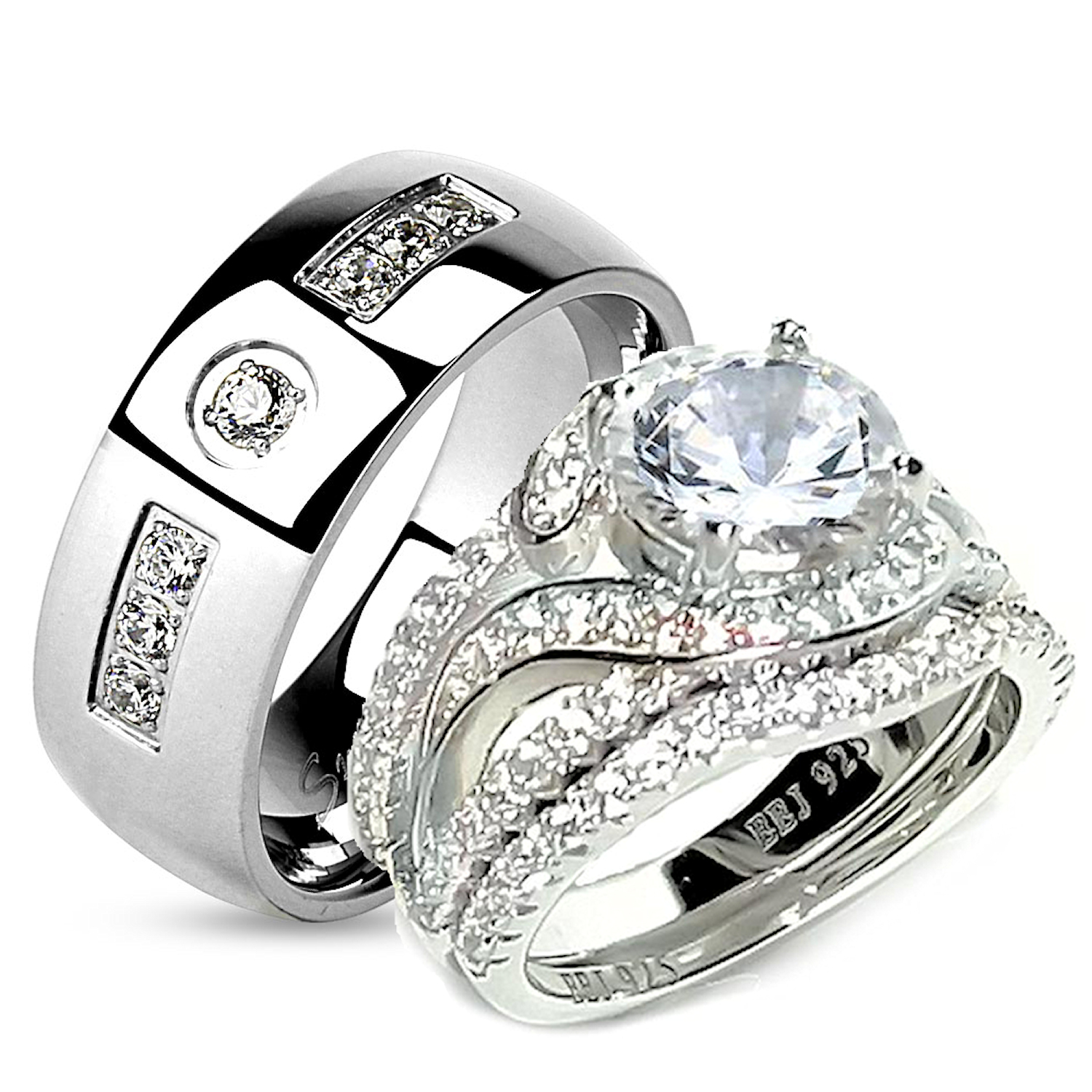 Up to 4 cash back Arrives by Wed Mar 16 Buy Wedding Rings Set for Him and Her Stainless Steel CZ Promise Rings for Couples Matching His and Hers Engagement Rings. His Hers 4 PCS Black Stainless Steel Wedding Engagement Ring Band Set Stud. Stainless steel rings do not require rhodium plating.